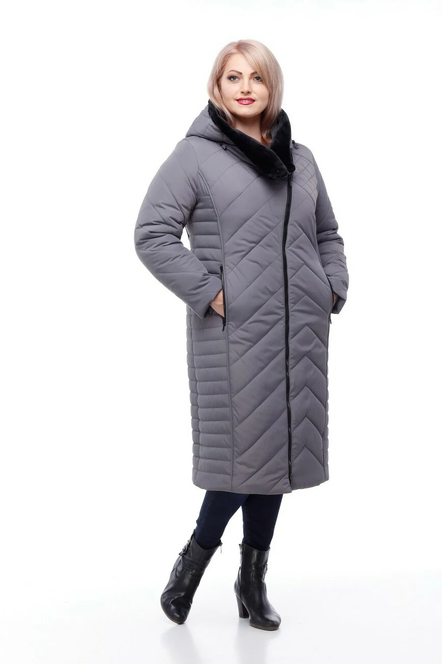 Зимнее пальто Мира овчина (темно-серый)