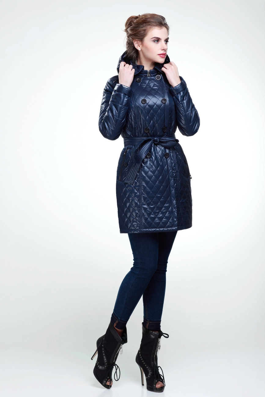 Будущий образ, словно конструктор, создаем по частям. Модное молодежное полупальто полуприлегающего силуэта из плащевой стеганой ткани. Рукав втачной двухшовный. Застежка смещенная на скрытую молнию и два ряда декоративных пуговиц. Воротник отложной на стойке. Карман "листочка". Детали декорированы искусственной кожей. Пояс завязывающийся. Дизайнерами Origa модель предложена в однотонном и комбинированном варианте.