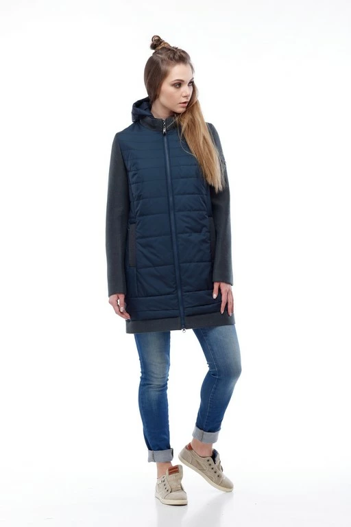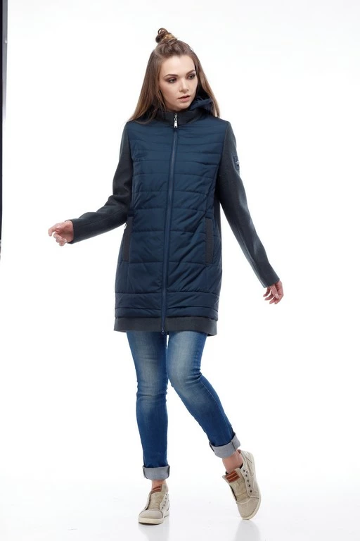 Ультрасовременная комбинированная курточка – последний тренд будущей весны. Свобода движения, многообразие сочетаний с обувью и аксессуарами позволит своей обладательнице быть на вершине каждый день, удивлять, восхищать и очаровывать. Модное сочетание двух видов ткани в одной модели: рукава, спинка и воротник изделия из шерсти, передняя полочка и отстегивающийся капюшон из оригинально простроченной плащевки. Модель прямого кроя, многоступенчатый низ. Застежка по центру изделия и карман-листочка на молнии.