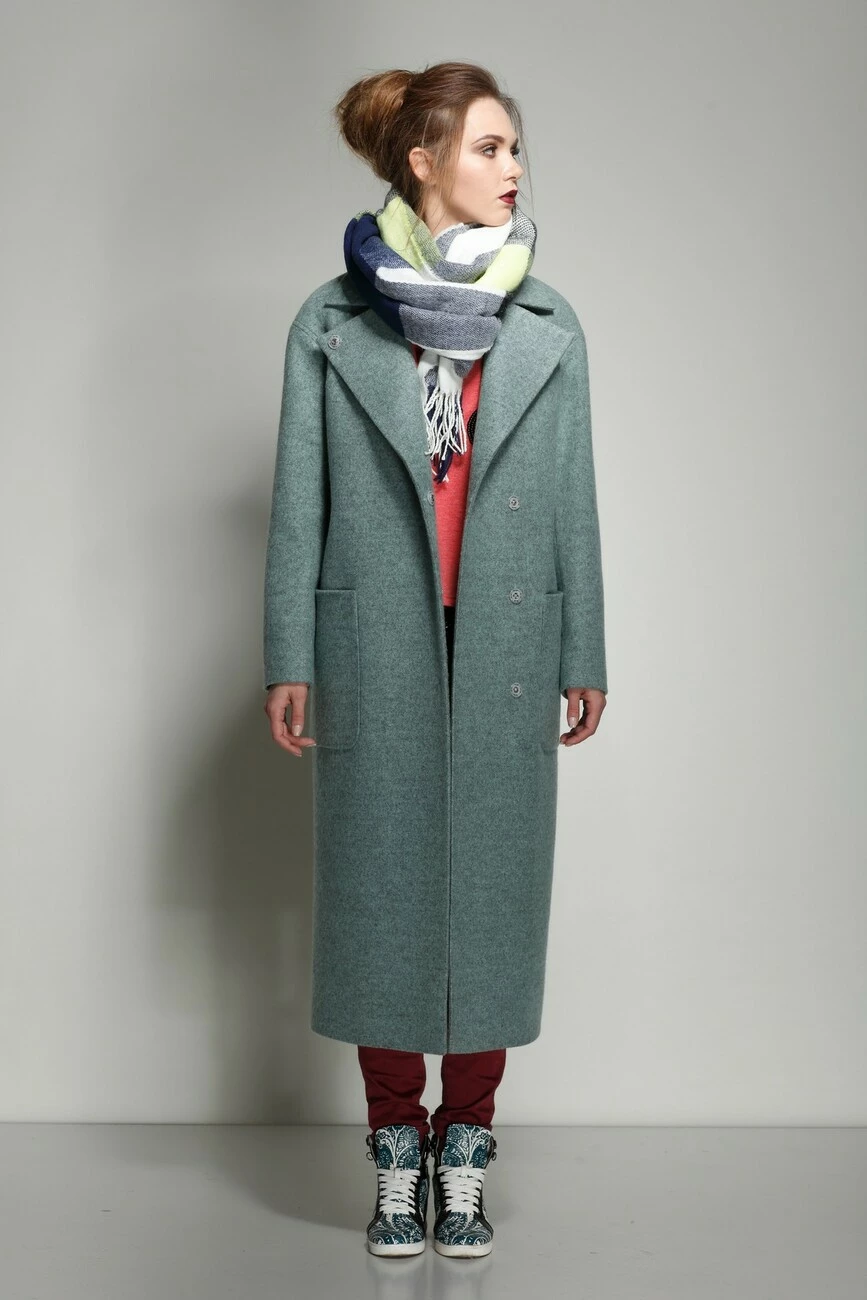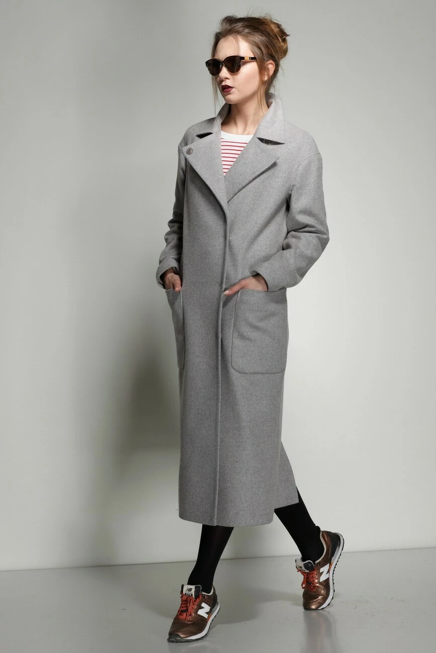 Молодежное однотонное пальто прямого силуэта в стиле