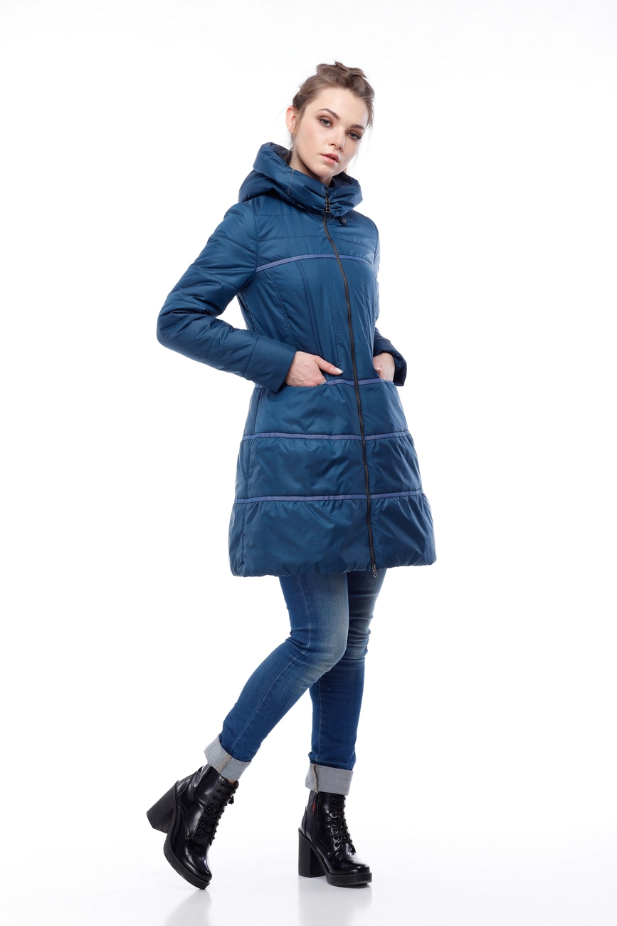 Новинка от ТМ ОRIGA в романтическом стиле. Модель для создания образа современной принцессы. Максимальный комфорт в движении сочетается с легкостью и воздушностью. Интересная молодежная модель приталенного силуэта с переходом от талии в расклешенную юбочку, декорированную бархатной тесьмой. Карманы на молнии скрыты в шов. Объемный воротник-стойка, переходящий в капюшон. Модель представлена в нескольких вариантах ткани и модных в этом сезоне цветах.