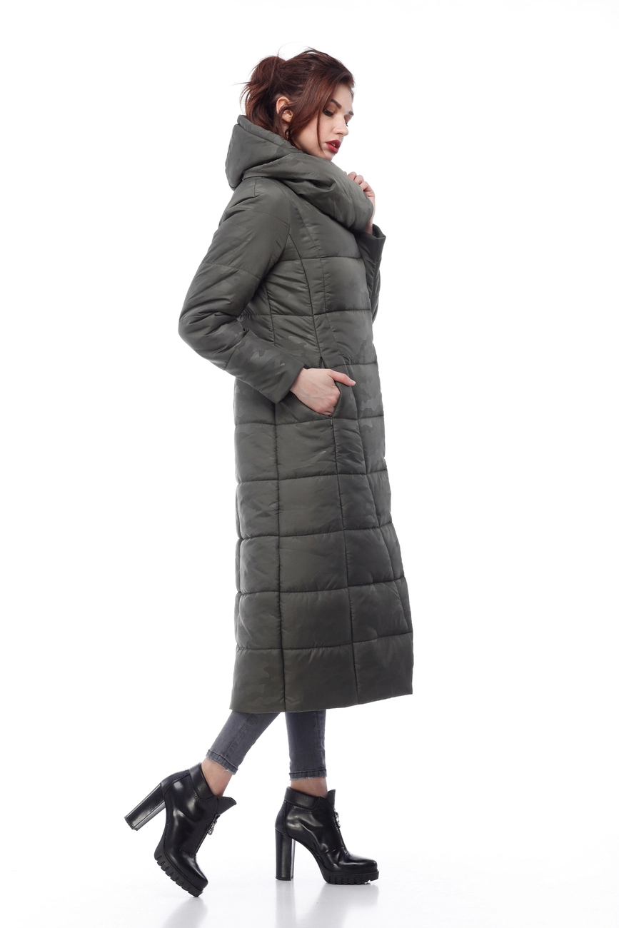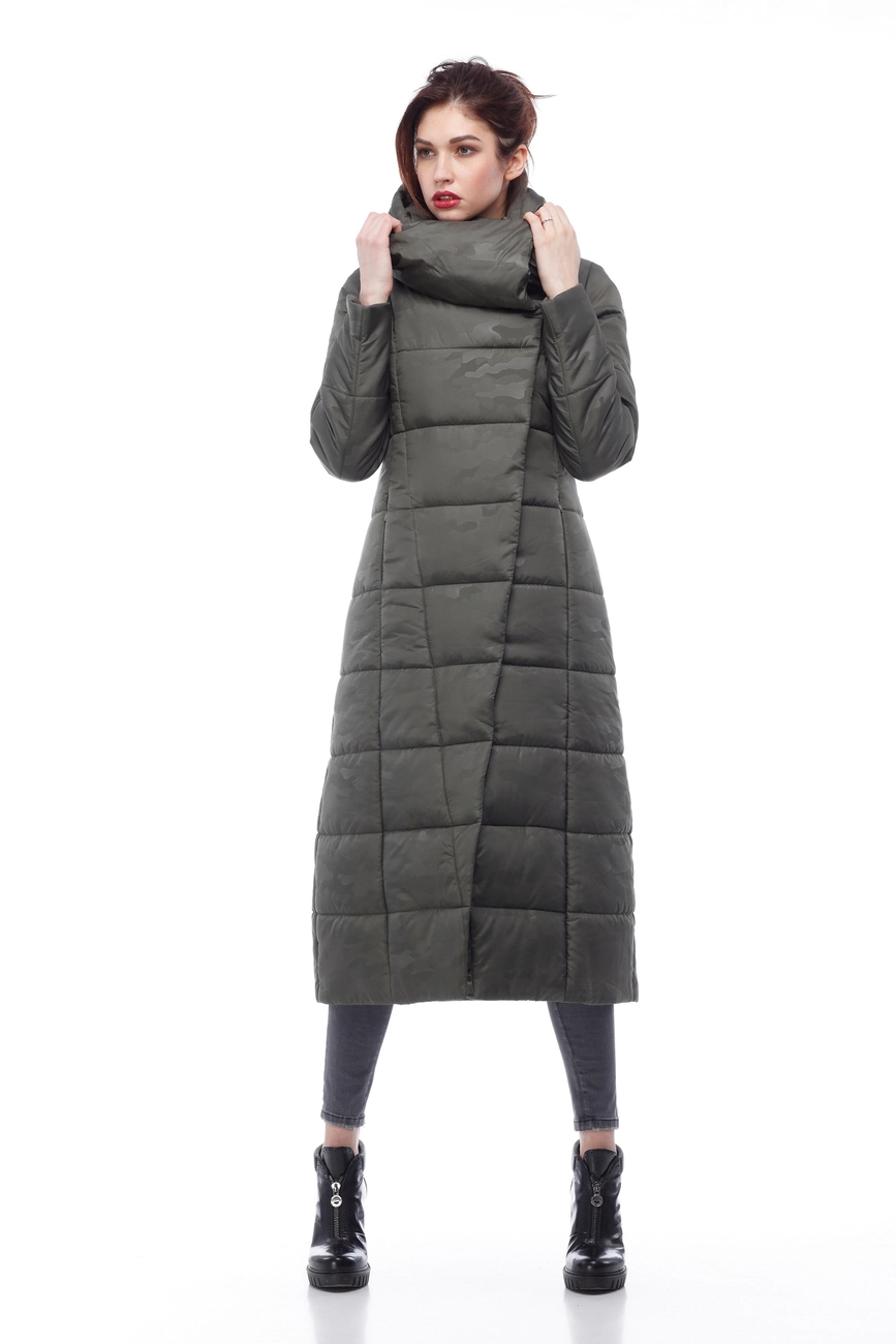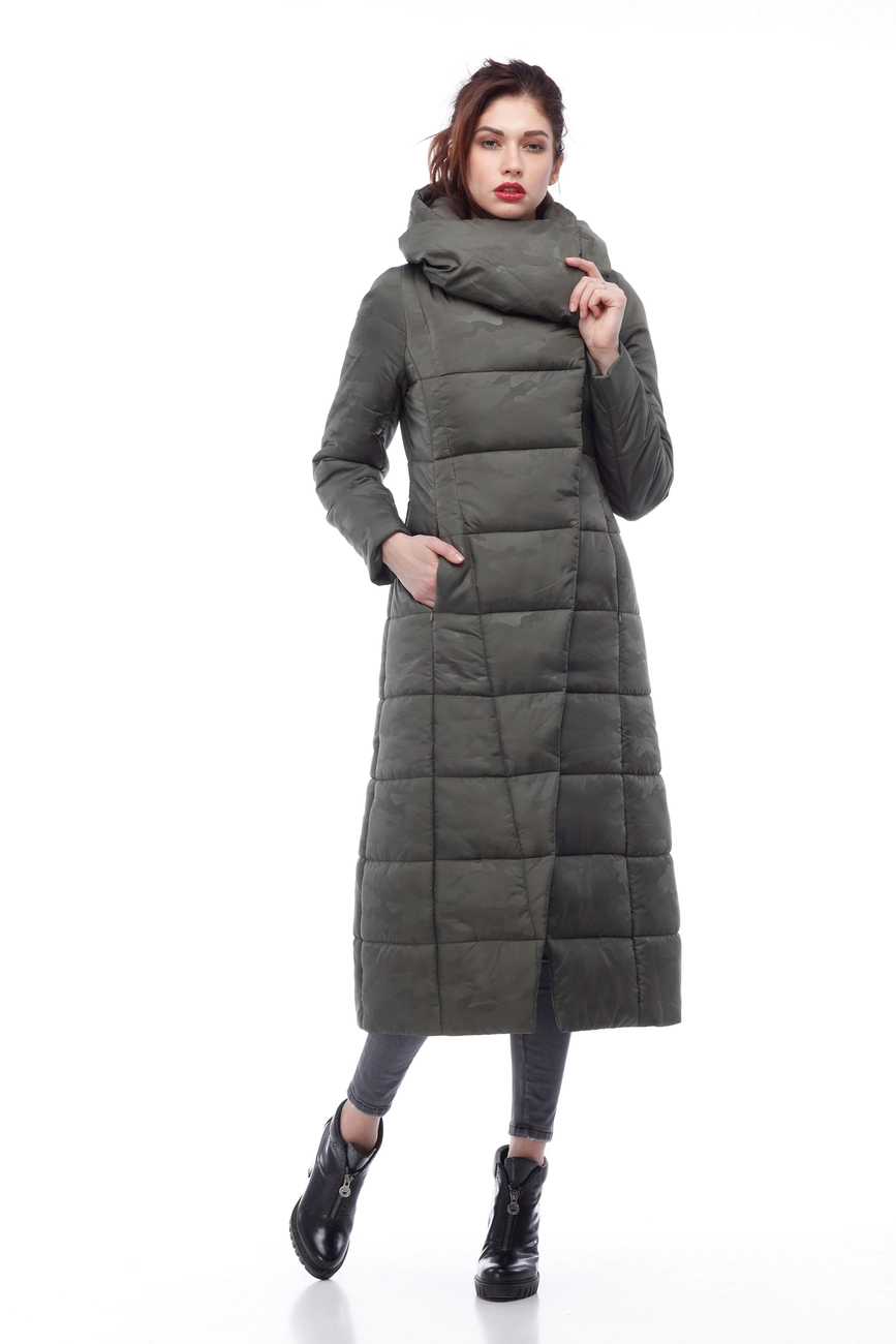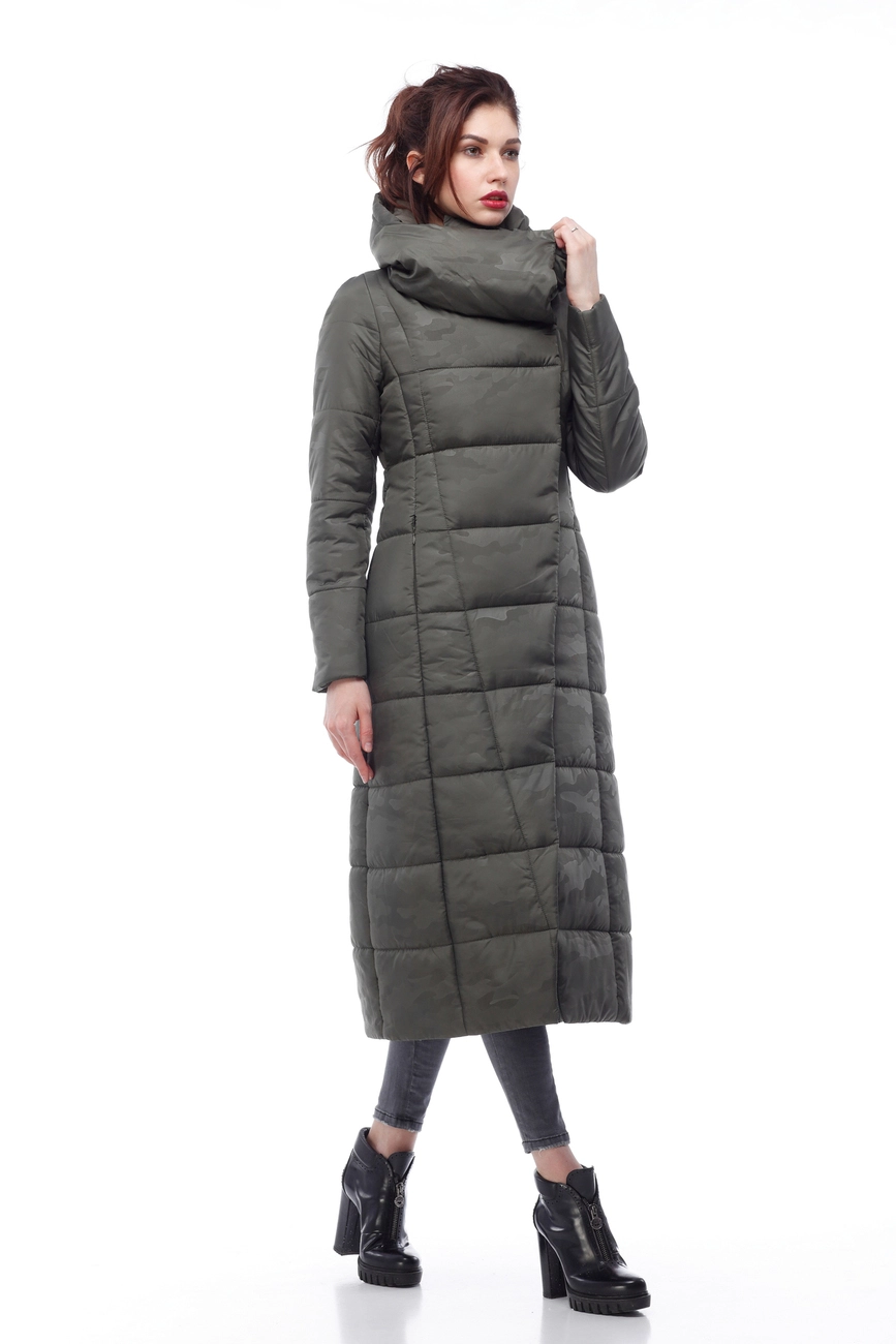 Женское зимнее пальто Комильфо (хаки принт милитари)