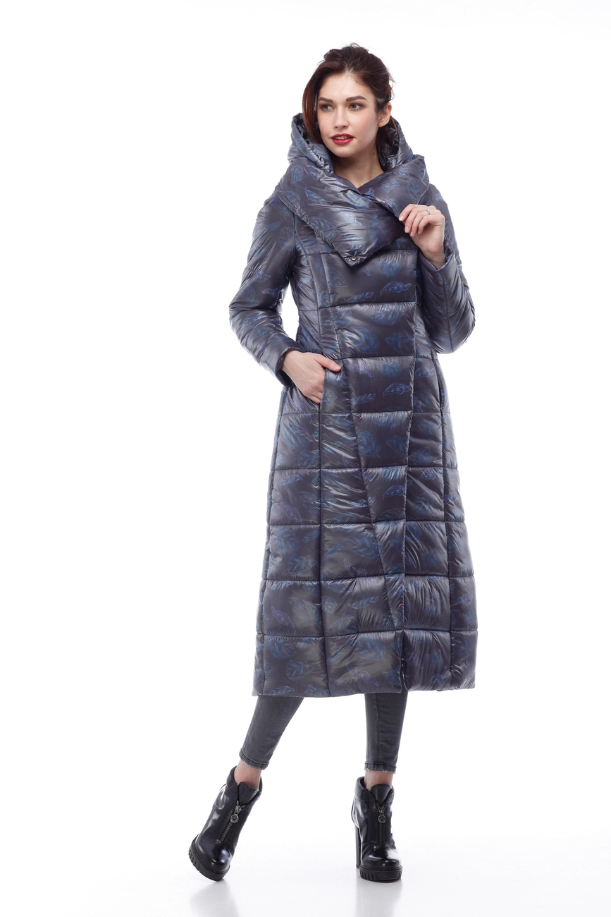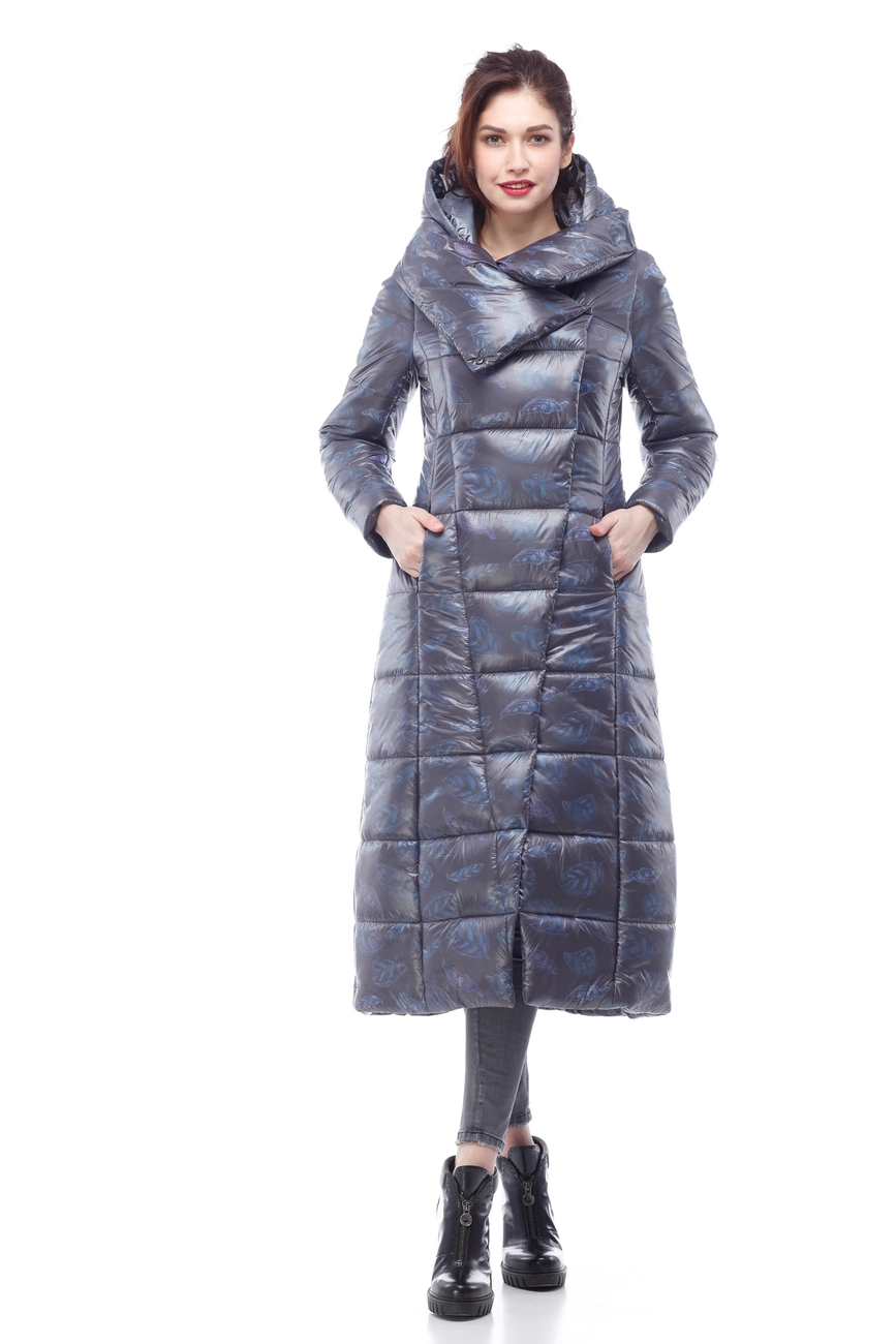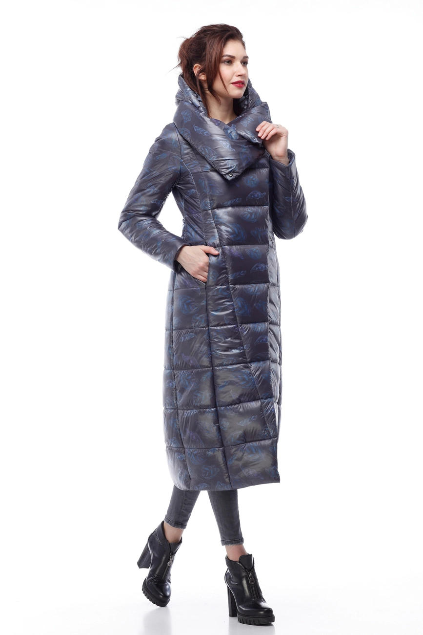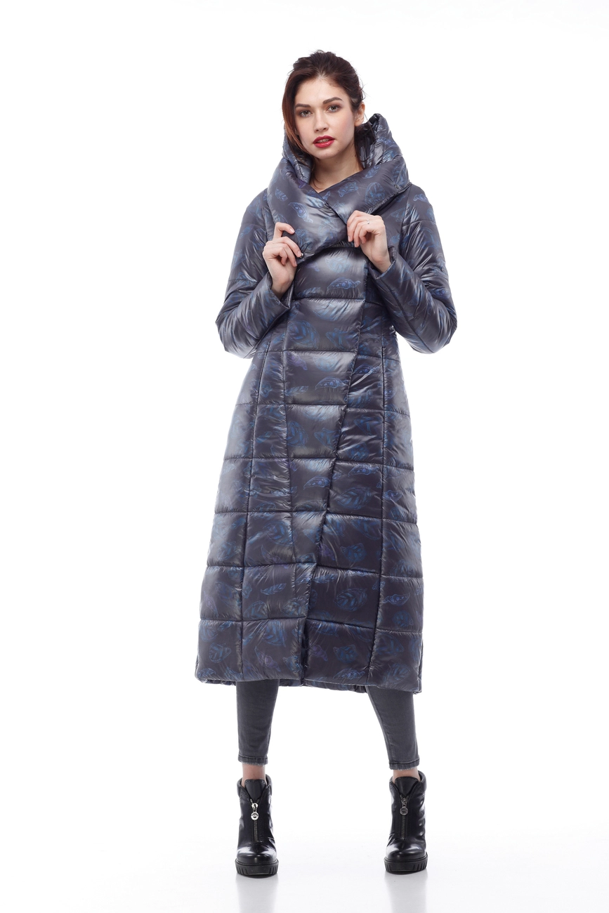Женское зимнее пальто Комильфо (темно-синий принт милитари)