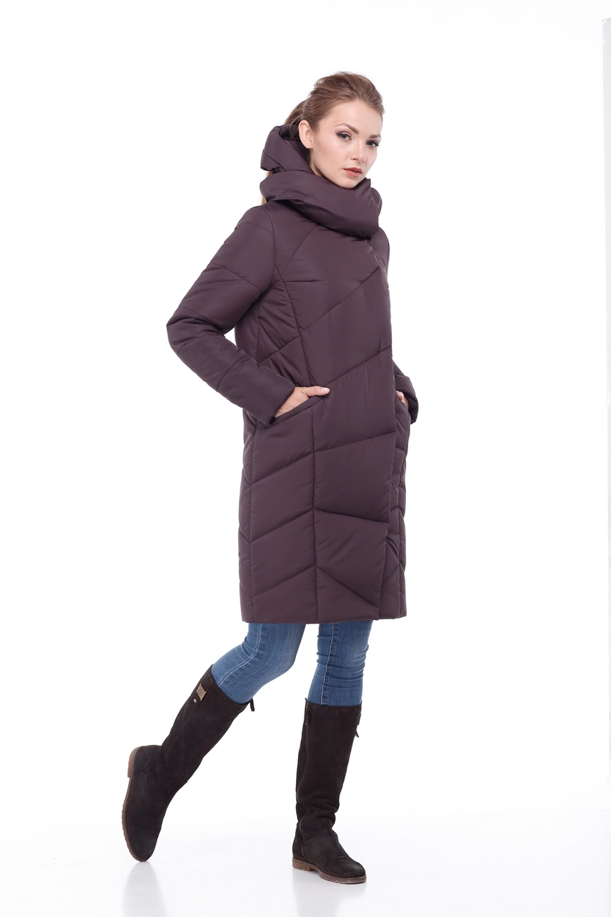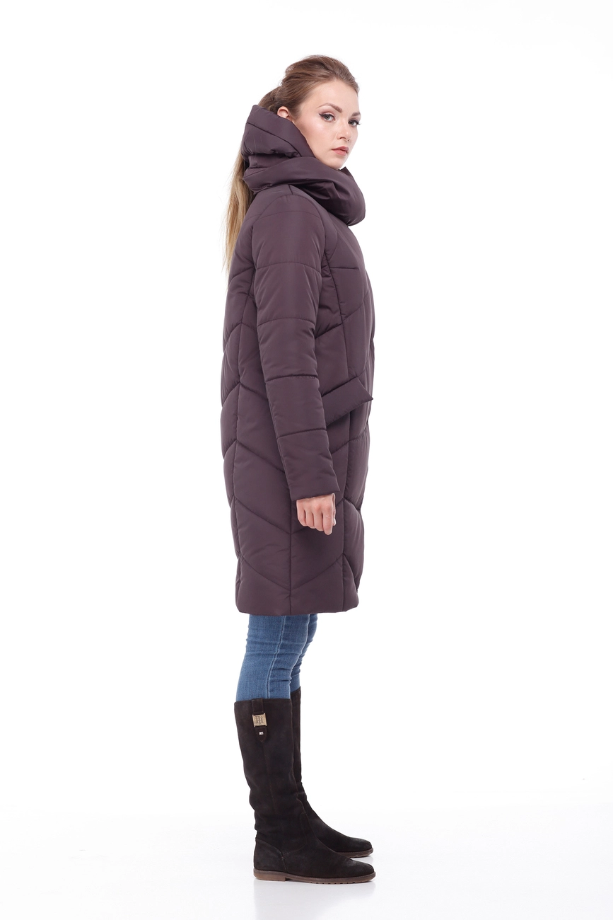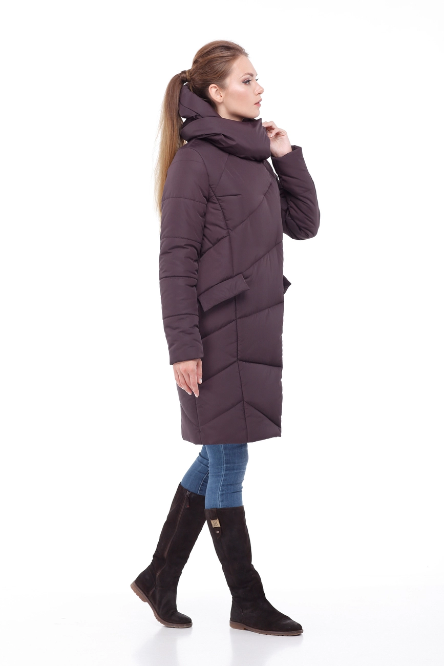 Объемный ворот со съемным капюшоном, утепленный лебяжим пухом.